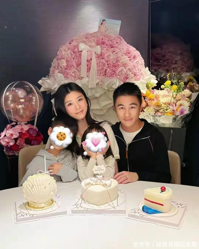 奚梦瑶晒37岁生日现场,何猷君准备粉色玫瑰,一双儿女可爱出镜